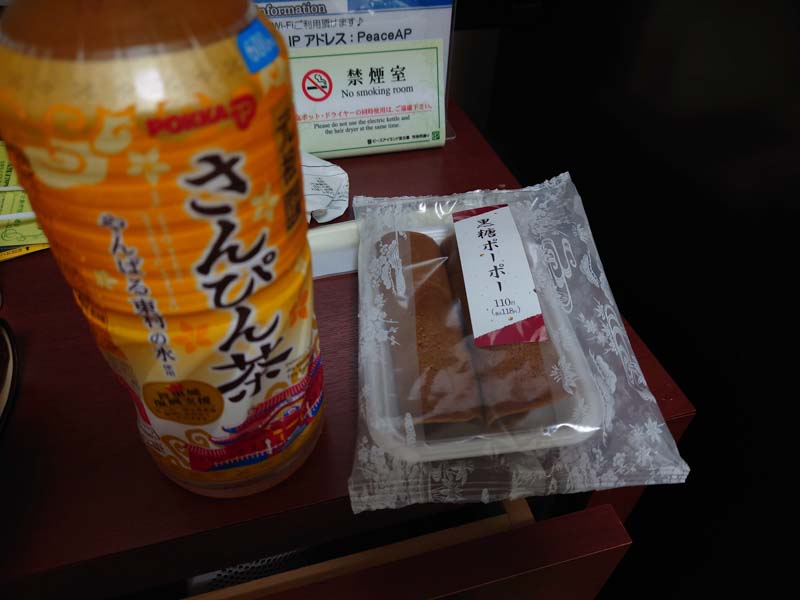 コンビニで買ってきたさんぴん茶と黒糖ポーポー