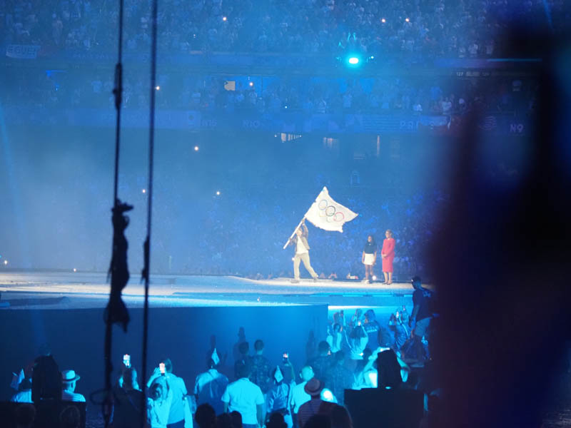 オリンピック旗を受け取るイーサン
