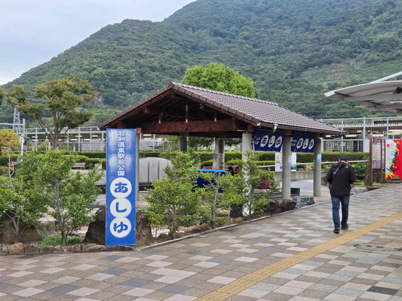石和温泉駅前の足...