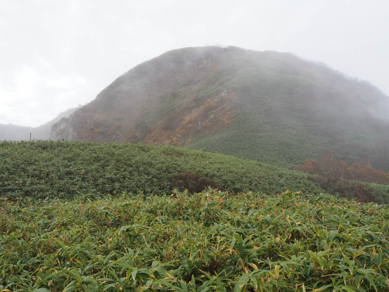 正面に雨飾山山頂が見えてきた