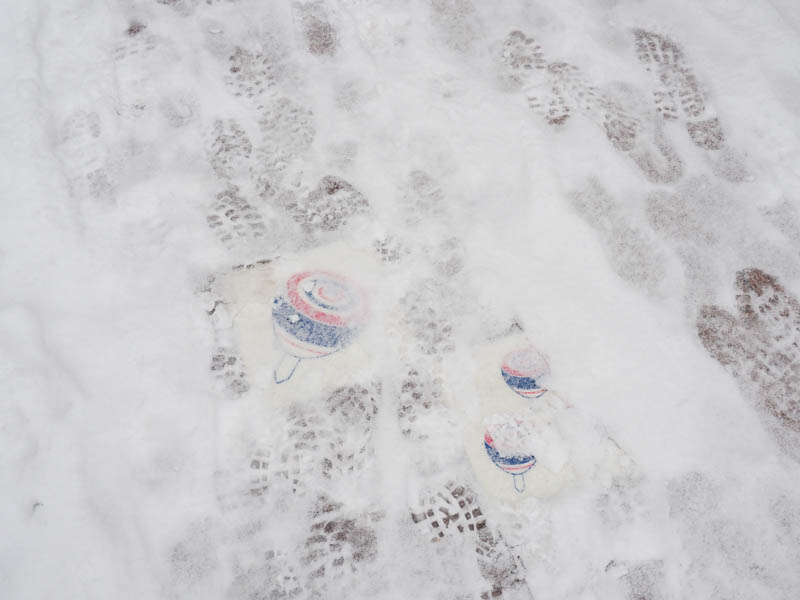 独楽の絵も雪に隠れる