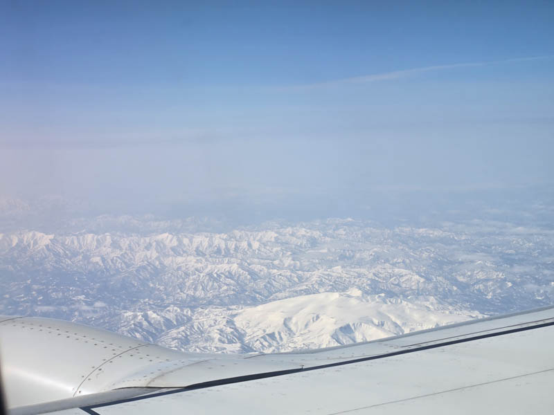 東北の雪山を上空...