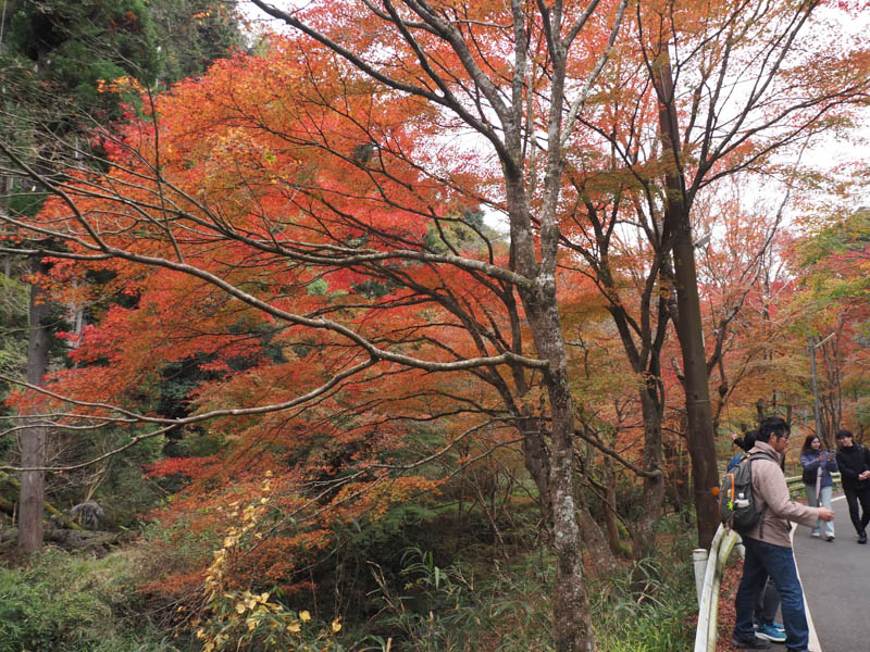 一際赤味が強い椛で、曇天でも映える