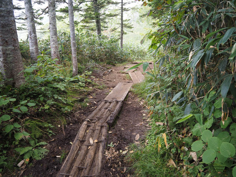 足元がぬかるんでいるので木道がありがたいです。まあ、木も滑るんですが