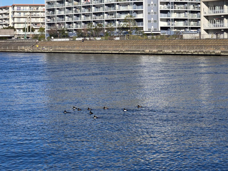 白黒の鴨みたいな鳥たちが泳いでいました